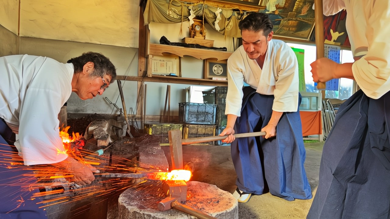 Today, there are three craftsmen working together at the smithy: Yasumitsu, Kunimitsu, Kokuten.