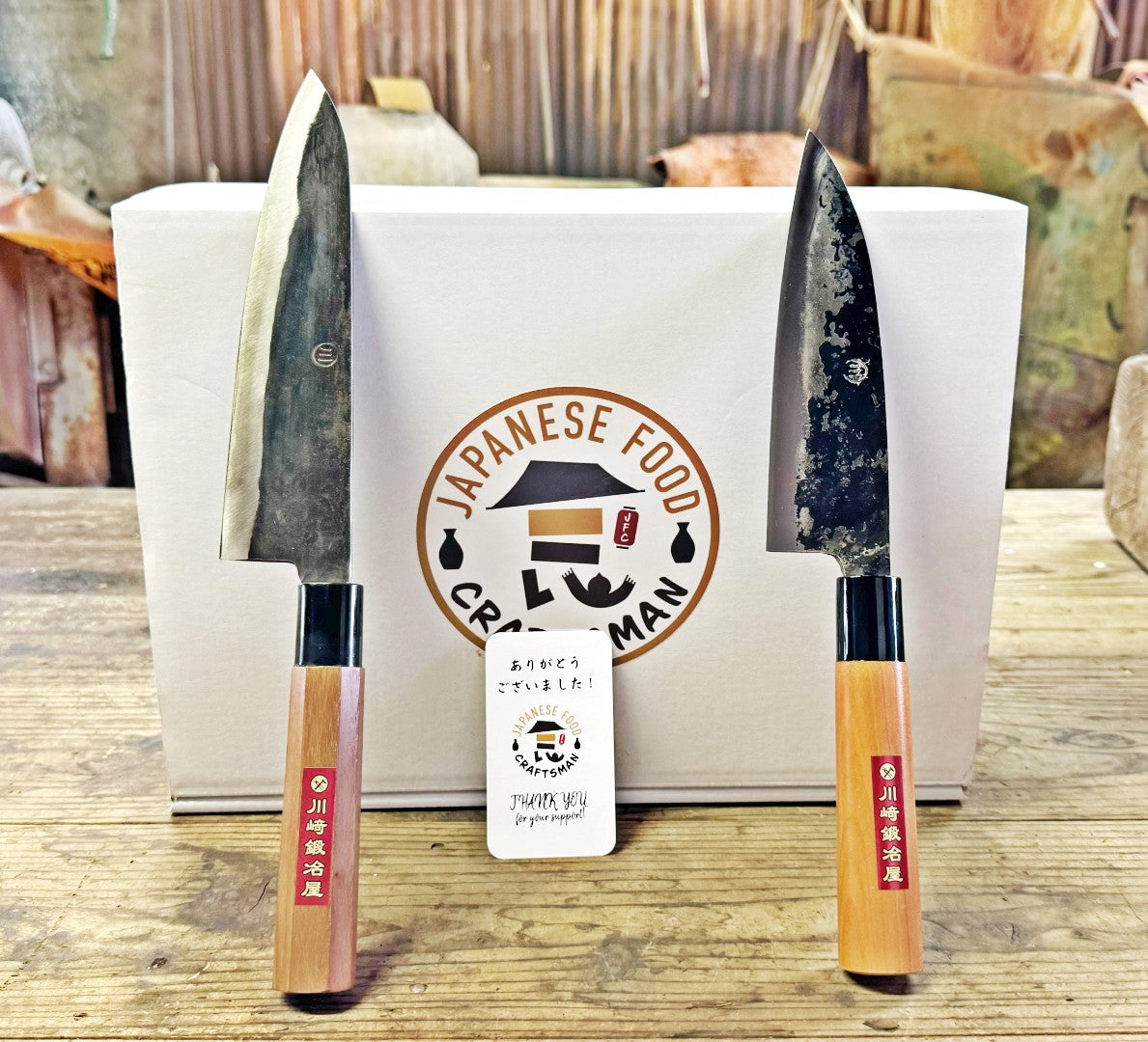 - ・Kurouchi Gyuto Kitchen Knife (handcrafted from steel, 18cm blade length, 220g weight)