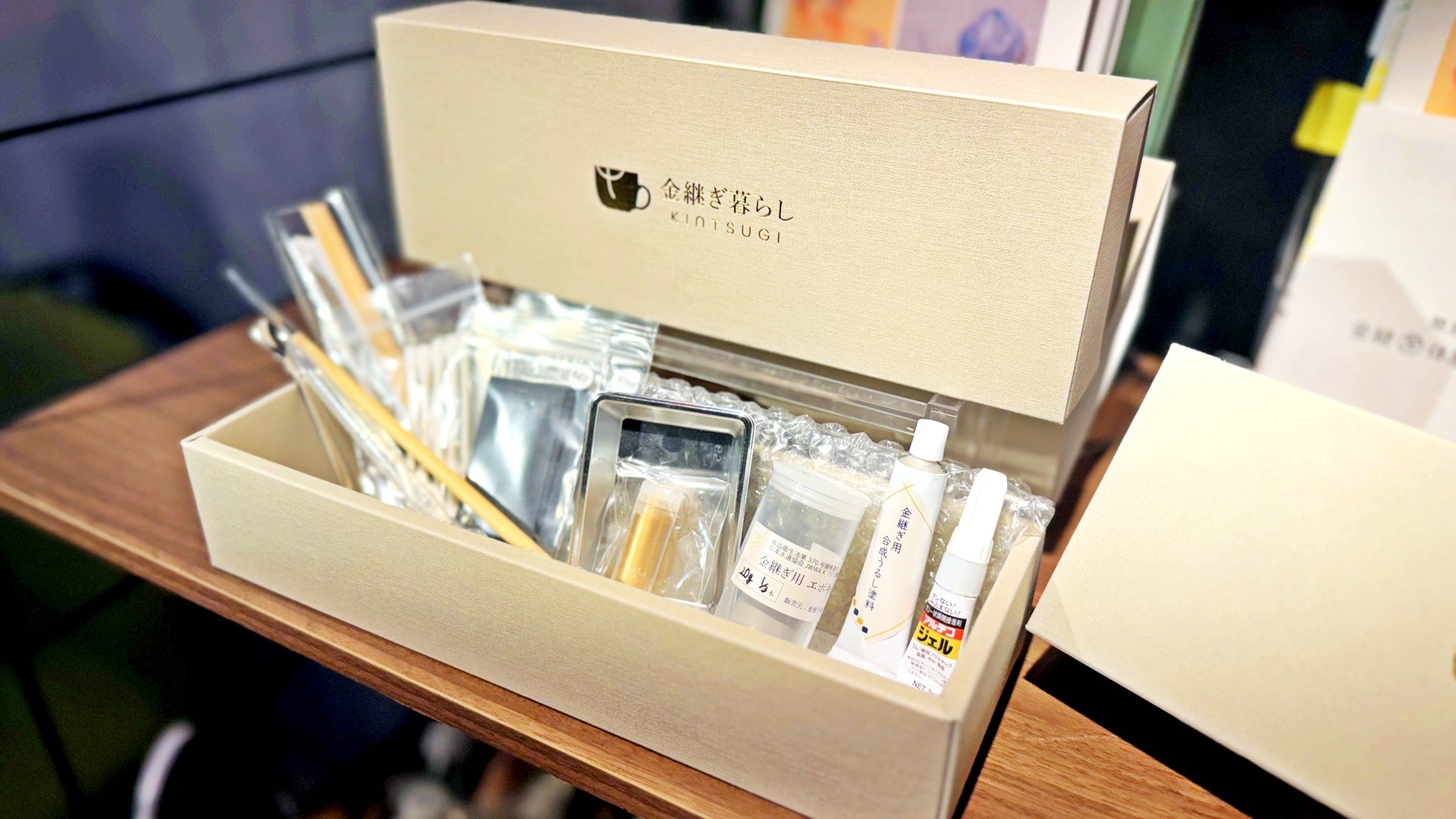 This kit includes tools and materials to perform simplified Kintsugi on a broken ceramic or tableware item.