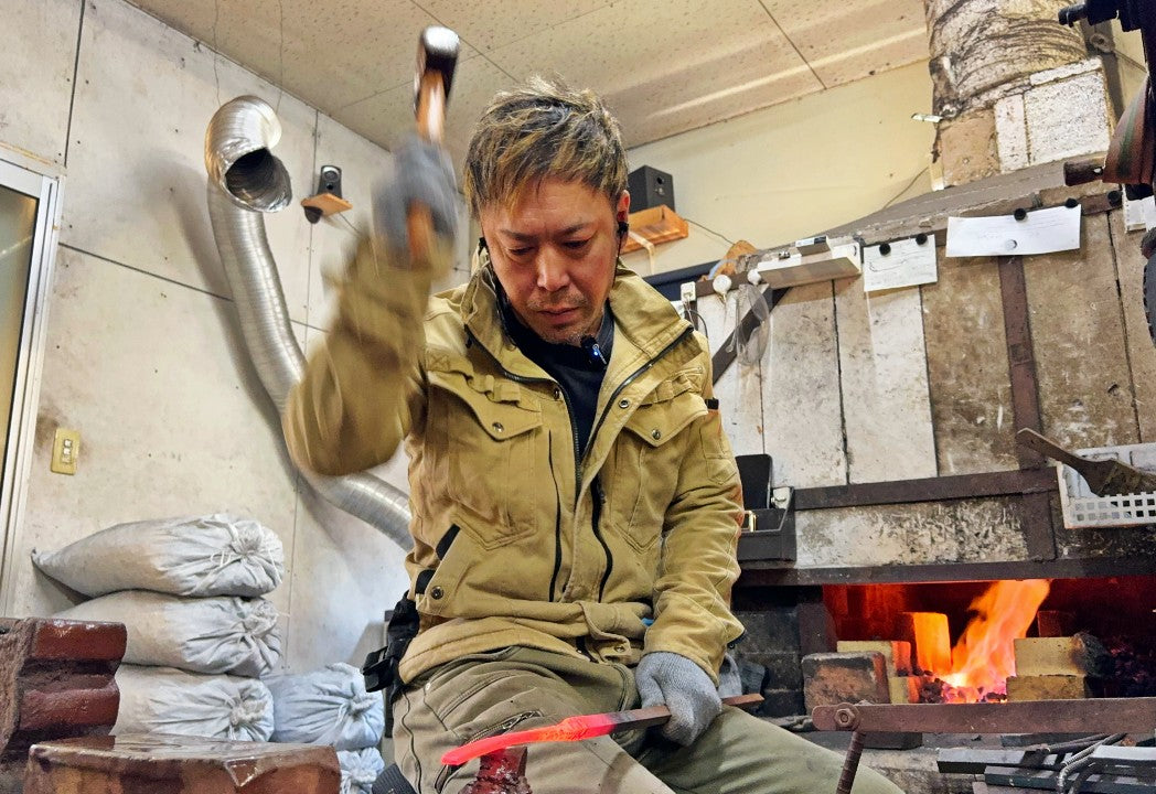 In the small town of Minamisaki in Kumamoto Prefecture, craftsman Nishida-san sits in front of his forge, crafting true Japanese-style knives.