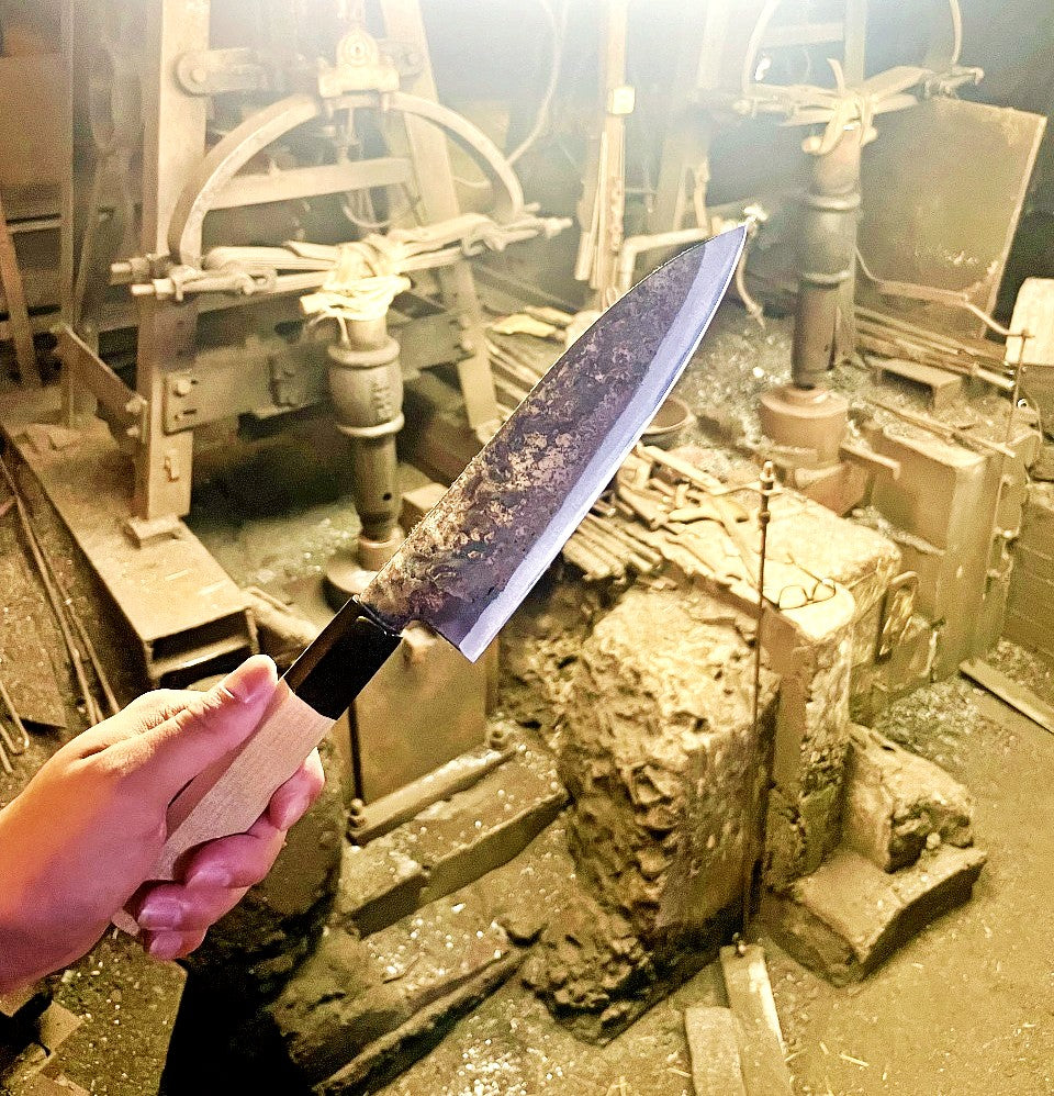 A handcrafted knife made from Yasugi steel, which is closest to the steel used in Japanese swords. Perfect for cutting vegetables.